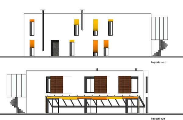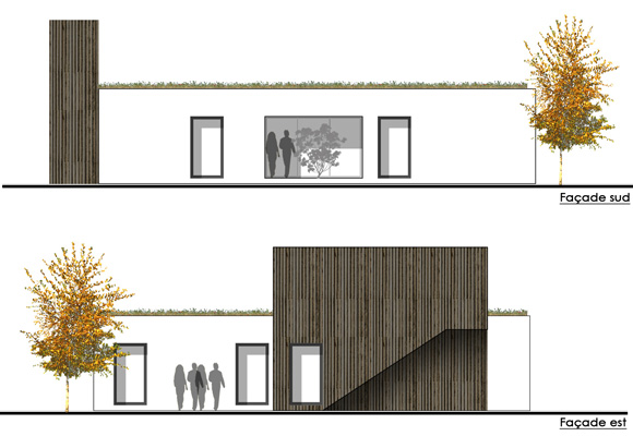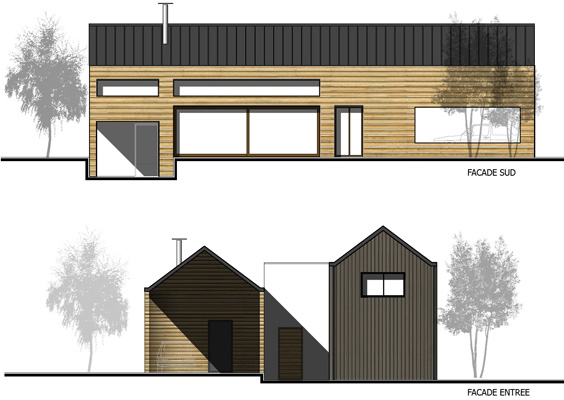Ces différentes façades d'habitations écologiques ont été conçues par le bureau d'études d'ECOP Habitat.
